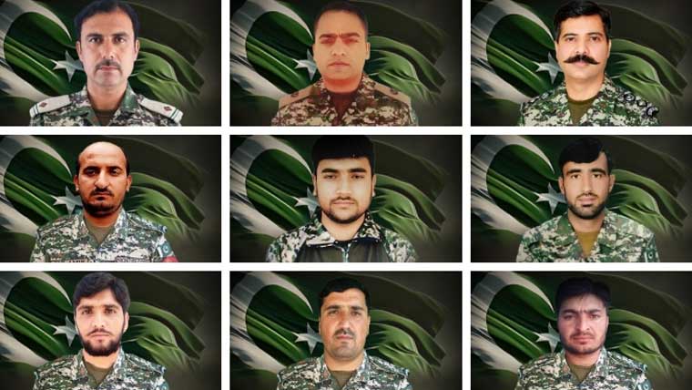 شعبہ تعلقات عامہ کا کہنا ہے کہ لیفٹیننٹ کرنل جنید عارف فرنٹ سے ٹیم کی قیادت کر رہے تھے، شہید ہونے والے دیگر 9 جوانوں میں نائب صوبیدار اعظم گل، نائیک عدیل حسین، نائیک گل امیر شامل ہیں، اس کے علاوہ لانس نائیک شیر خان، لانس نائیک طالش فراز، لانس نائیک ارشاد حسین، سپاہی طفیل خان، سپاہی عاقب علی اور سپاہی محمد زاہد نے بھی جامِ شہادت نوش کیا۔